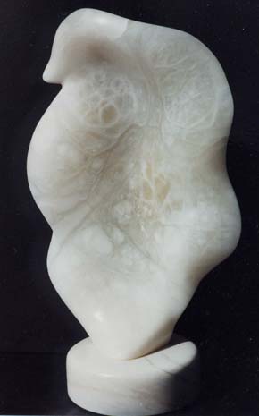 works are carved from large Italian alabaster stones. The stone is very translucent and when displayed in front of a light source the