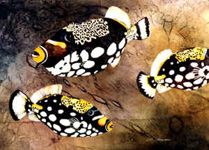 Clown Trigger Fish Mixed Media Collage Size 22 X 30